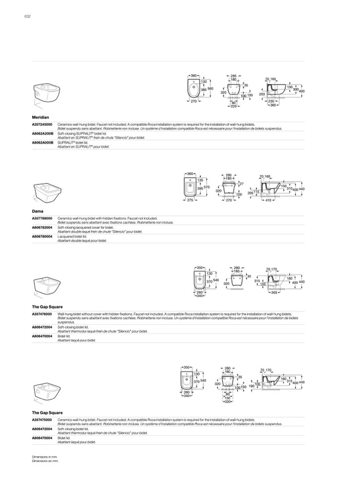 Bidet suspendu sans abattant. Robinetterie non incluse. Un système d’installation compatible Roca est nécessaire pour l’installation de bidets suspendus.
