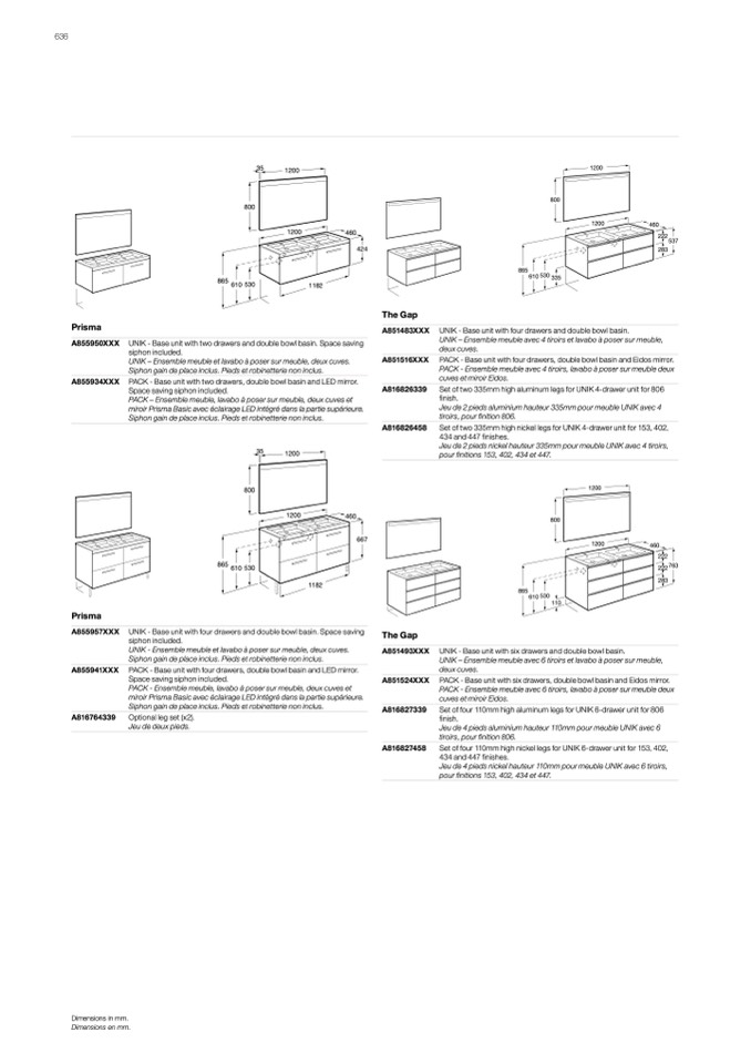 PACK - Base unit with six drawers, double bowl basin and Eidos mirror.