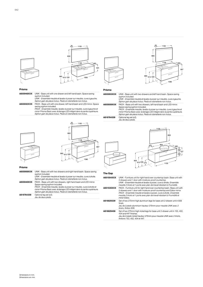 2 drawers and 1 door with moisture-proof countertop and Eidos mirror.