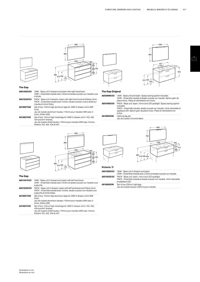 PACK - Base unit 3 drawers, basin with right hand bowl and Eidos mirror.