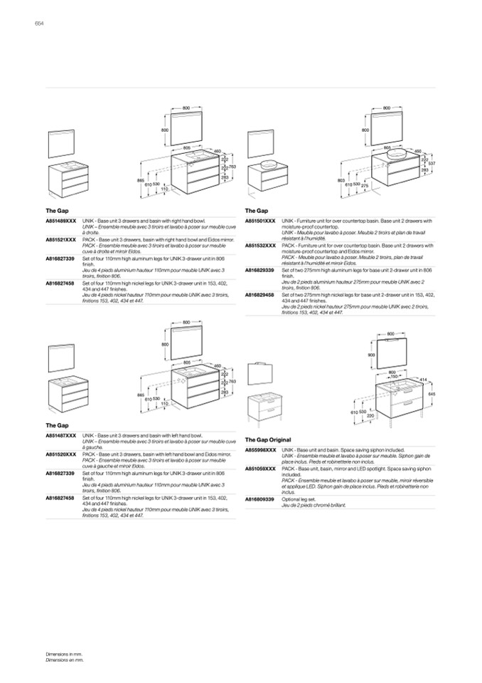 PACK - Base unit 3 drawers, basin with right hand bowl and Eidos mirror.
