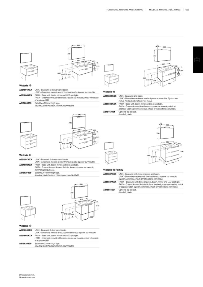 PACK - Base unit, basin, mirror and LED spotlight.