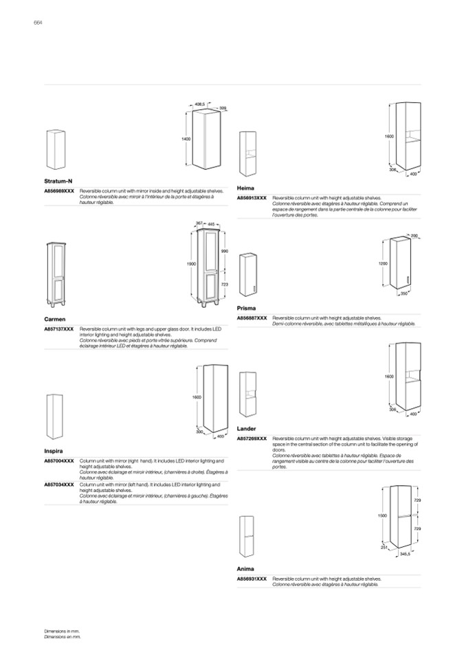 Column unit with mirror (right hand). It includes LED interior lighting and