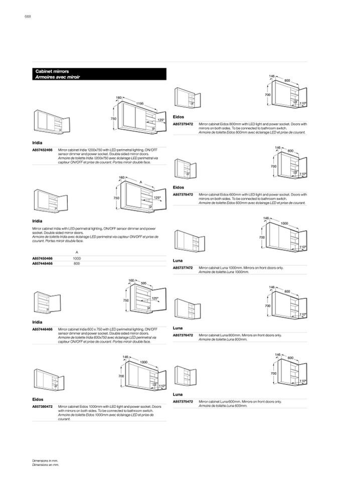 Armoire de toilette Iridia avec éclairage LED perimetral via capteur ON/OFF et prise de