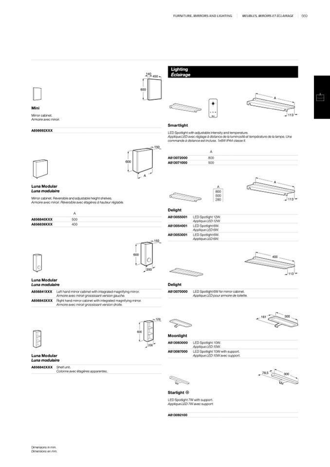 MEUBLES, MIROIRS ET ÉCLAIRAGE