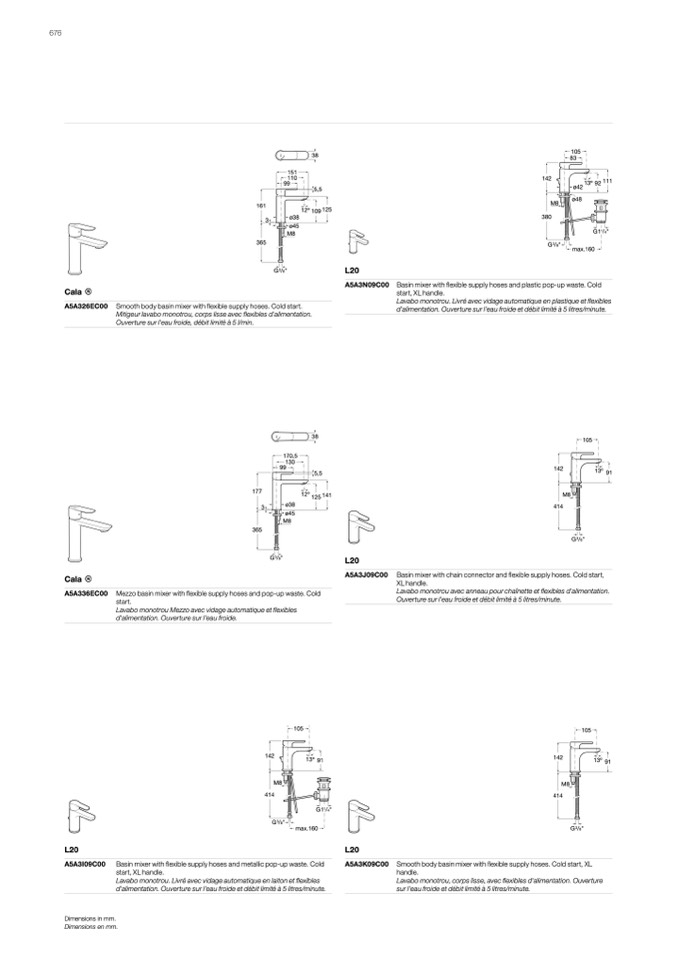 Smooth body basin mixer with flexible supply hoses. Cold start, XL