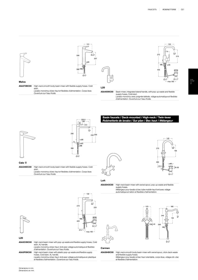 Robinetterie de lavabo / Sur plan / Bec haut / Mélangeur