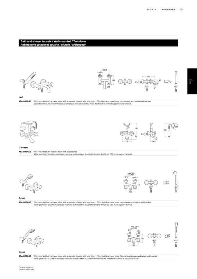 Bath and shower faucets / Wall-mounted / Twin-lever