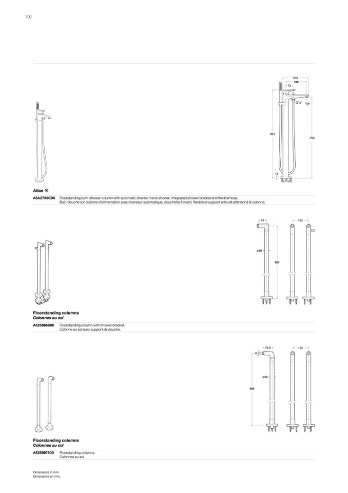 Floorstanding column with shower bracket.