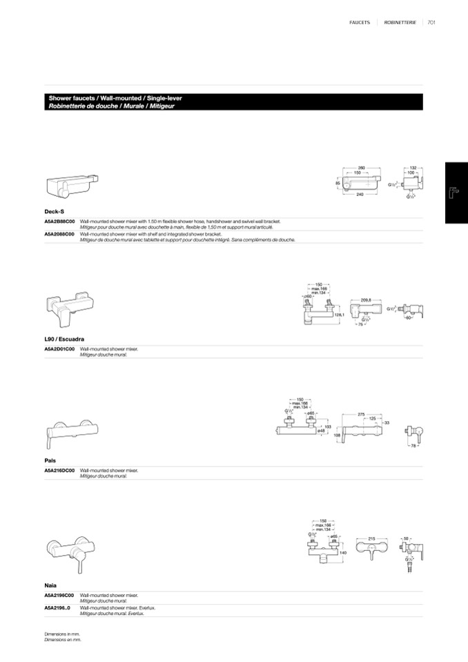 Shower faucets / Wall-mounted / Single-lever