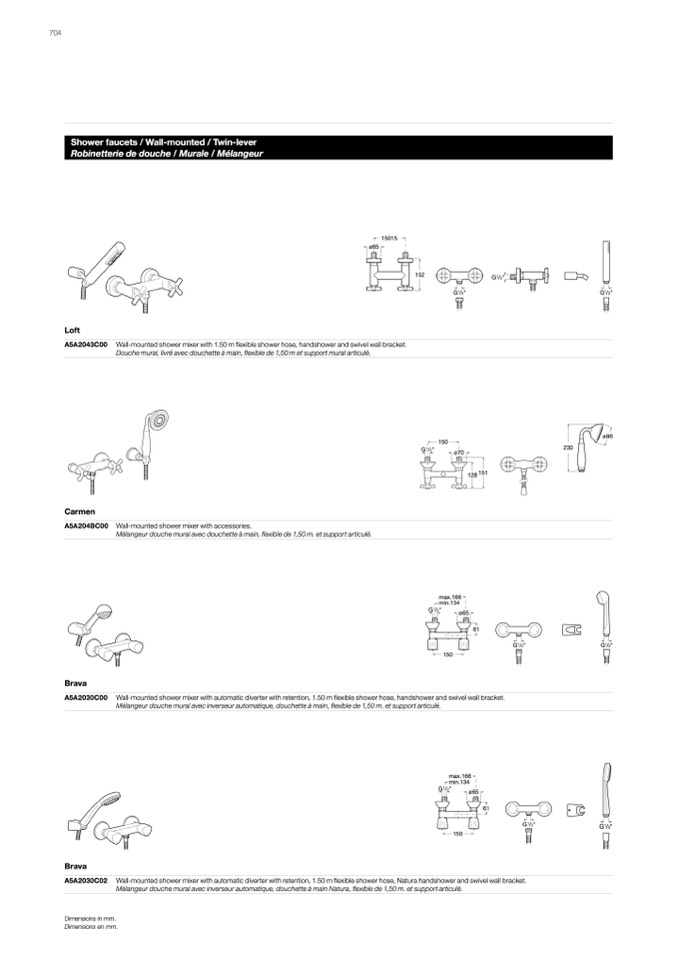 Wall-mounted shower mixer with 1.50 m flexible shower hose, handshower and swivel wall bracket.