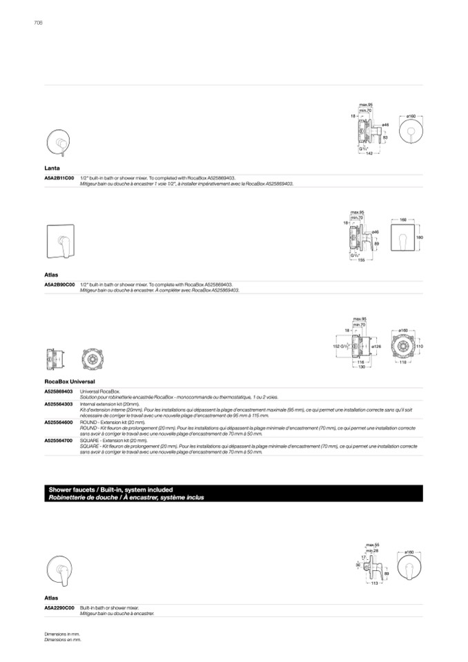 Solution pour robinetterie encastrée RocaBox - monocommande ou thermostatique, 1 ou 2 voies.