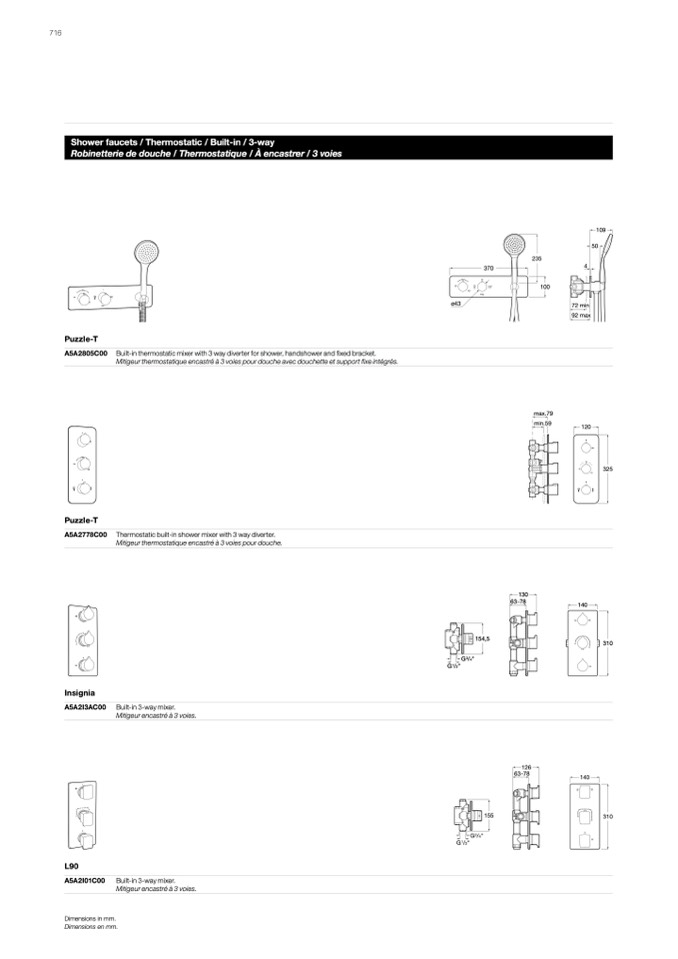 Robinetterie de douche / Thermostatique / À encastrer / 3 voies