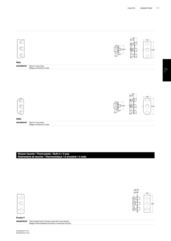 Robinetterie de douche / Thermostatique / À encastrer / 4 voies