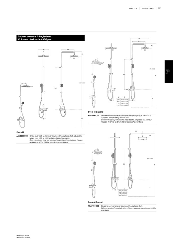 A5A9790C00 Single-lever mixer shower column with adaptable shelf.