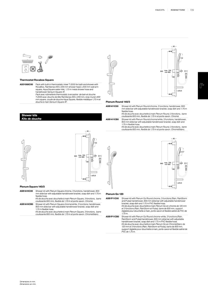 and Pulse) handshower, 800 mm slide bar with adjustable handshower