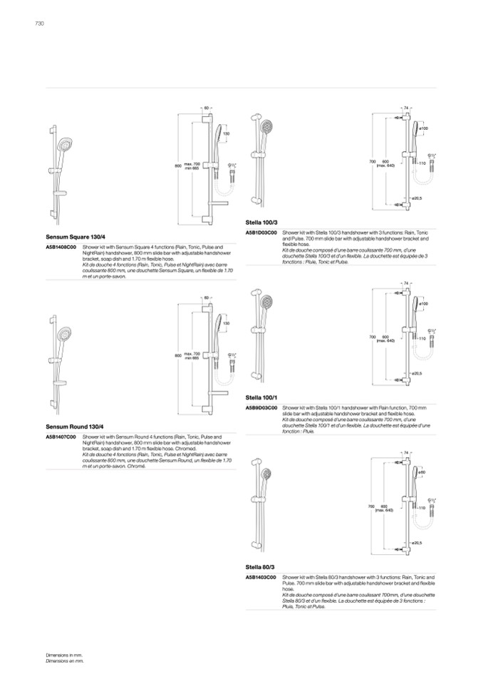 and Pulse. 700 mm slide bar with adjustable handshower bracket and