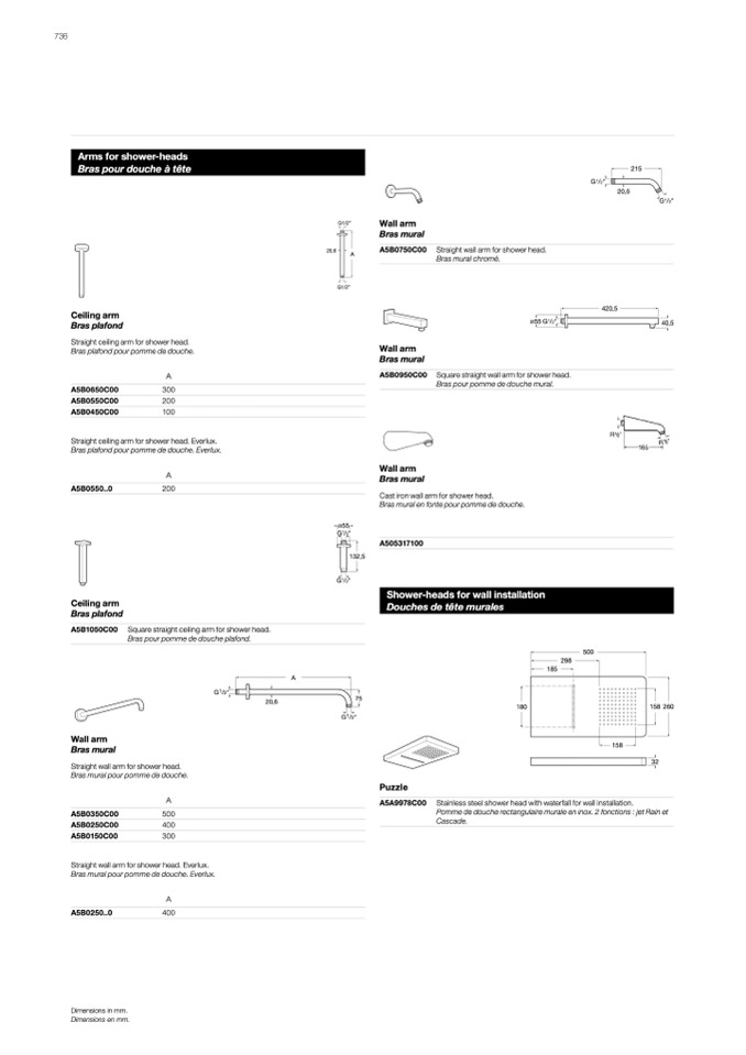 Bras pour pomme de douche plafond.