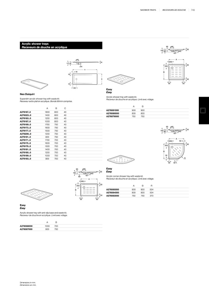 Receveur extra-plat en acrylique. Bonde 90mm comprise.