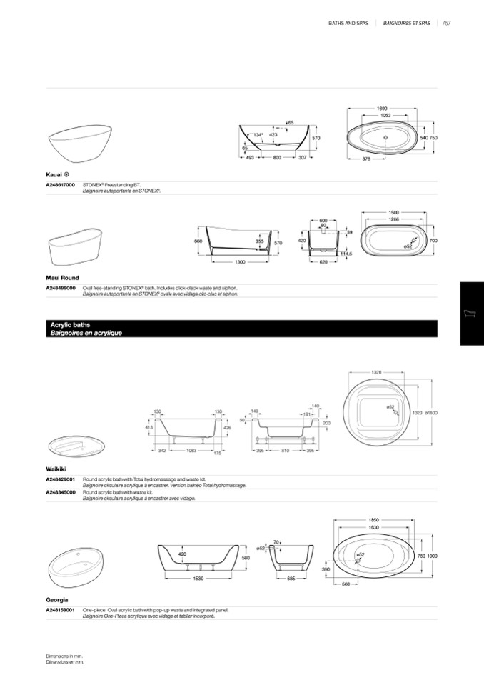 Baignoires en acrylique