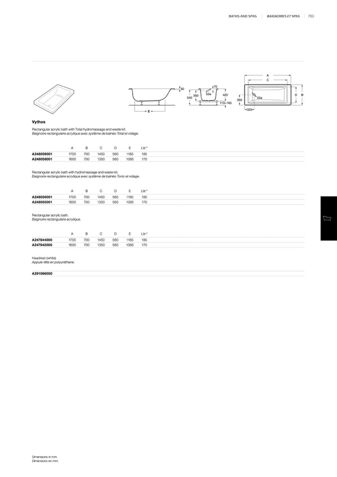 Baignoire rectangulaire acrylique avec système de balnéo Total et vidage.