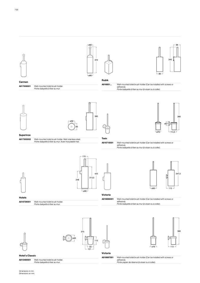 Wall-mounted toilet brush holder. Matt stainless steel.