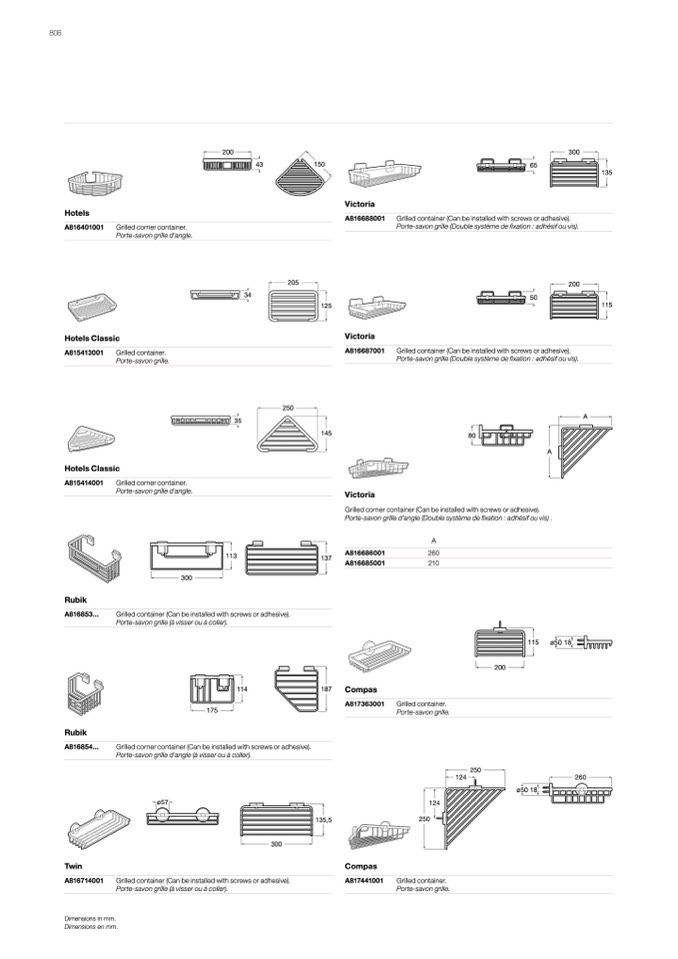 Porte-savon grille d'angle (Double système de fixation : adhésif ou vis) .