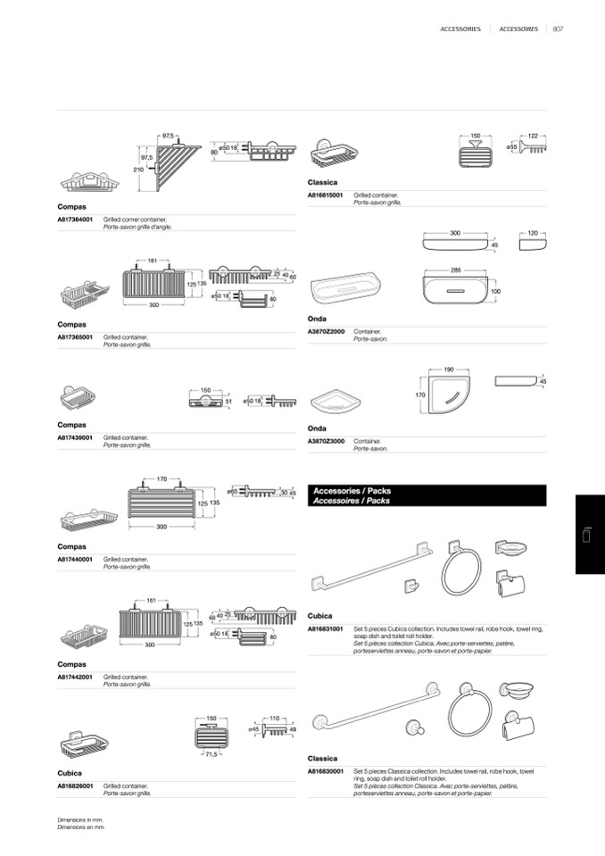 porteserviettes anneau, porte-savon et porte-papier.
