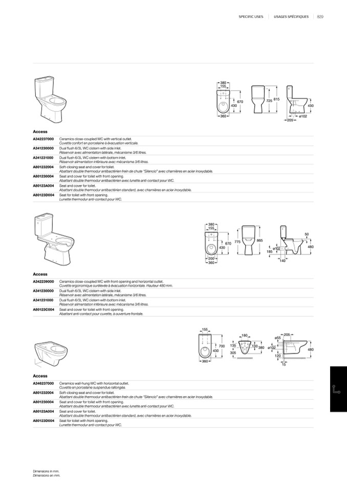 Abattant anti-contact pour cuvette, à ouverture frontale.
