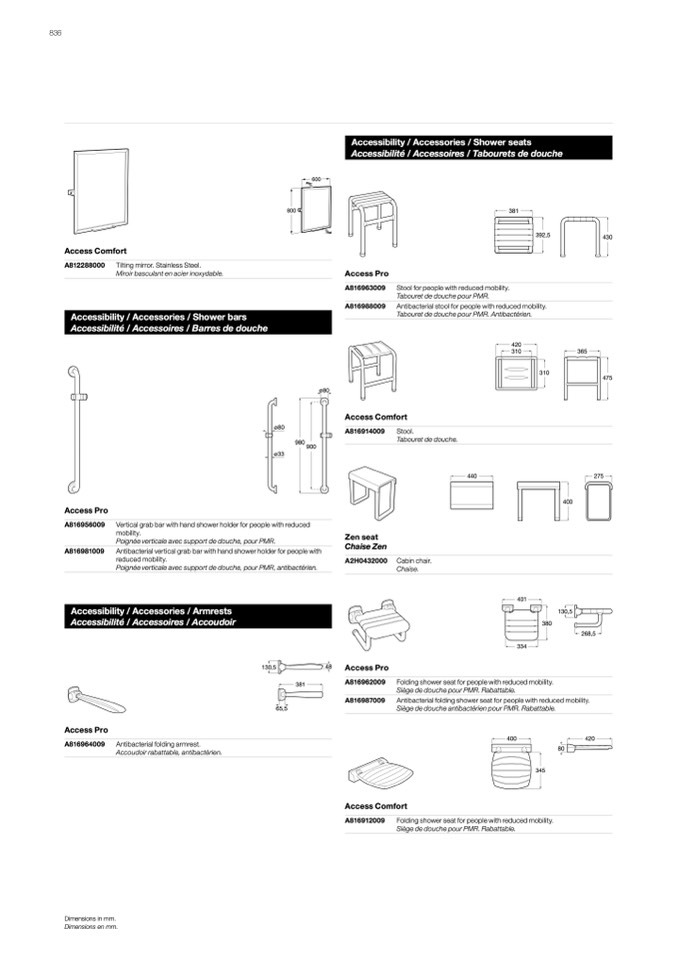 Poignée verticale avec support de douche, pour PMR, antibactérien.