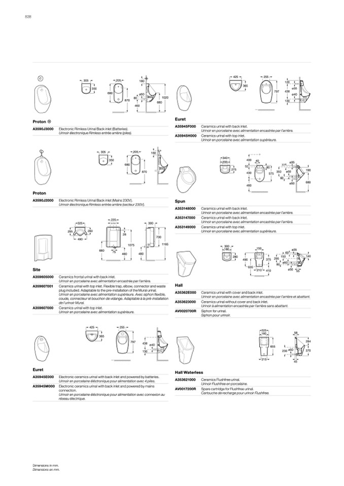 Urinoir électronique Rimless entrée arrière (piles).