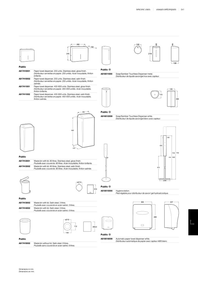 Paper towel dispenser. 400-600 units. Stainless steel, satin finish.