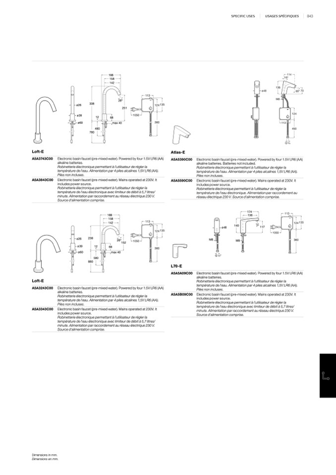 Electronic basin faucet (pre-mixed water). Mains operated at 230V. It