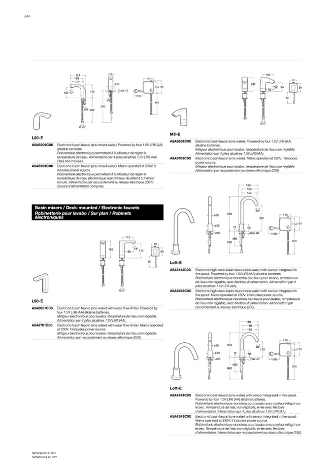 Electronic basin faucet (pre-mixed water). Mains operated at 230V. It