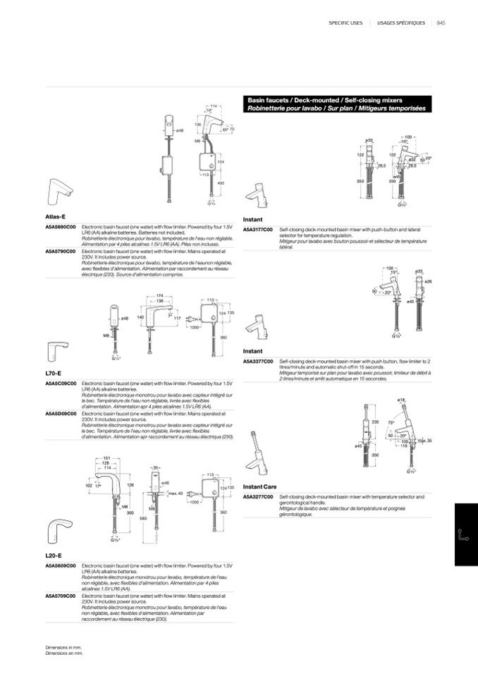Robinetterie pour lavabo / Sur plan / Mitigeurs temporisées