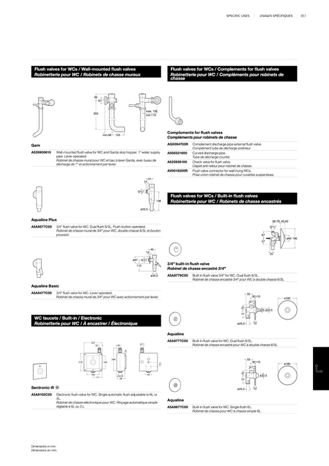 Electronic flush valve for WC. Single automatic flush adjustable to 6L or