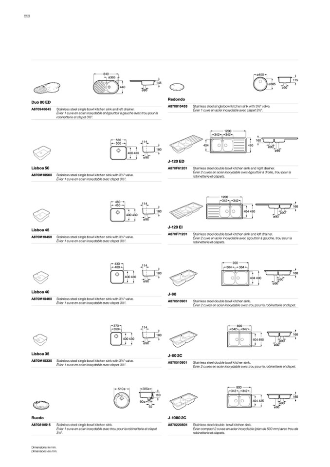Évier compact 2 cuves en acier inoxydable (plan de 500 mm) avec trou de