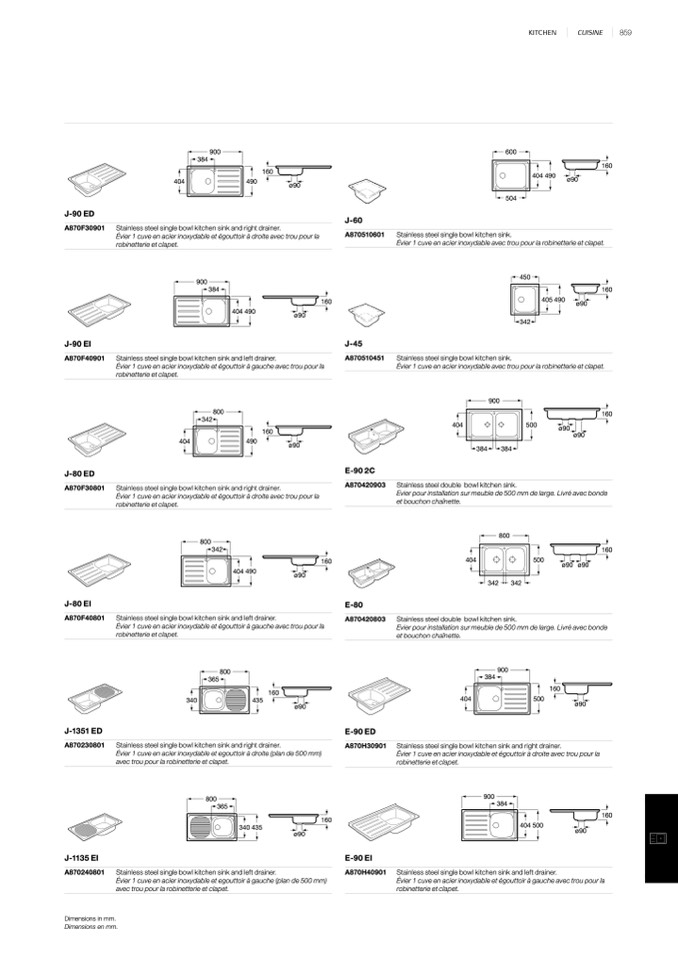 Evier pour installation sur meuble de 500 mm de large. Livré avec bonde