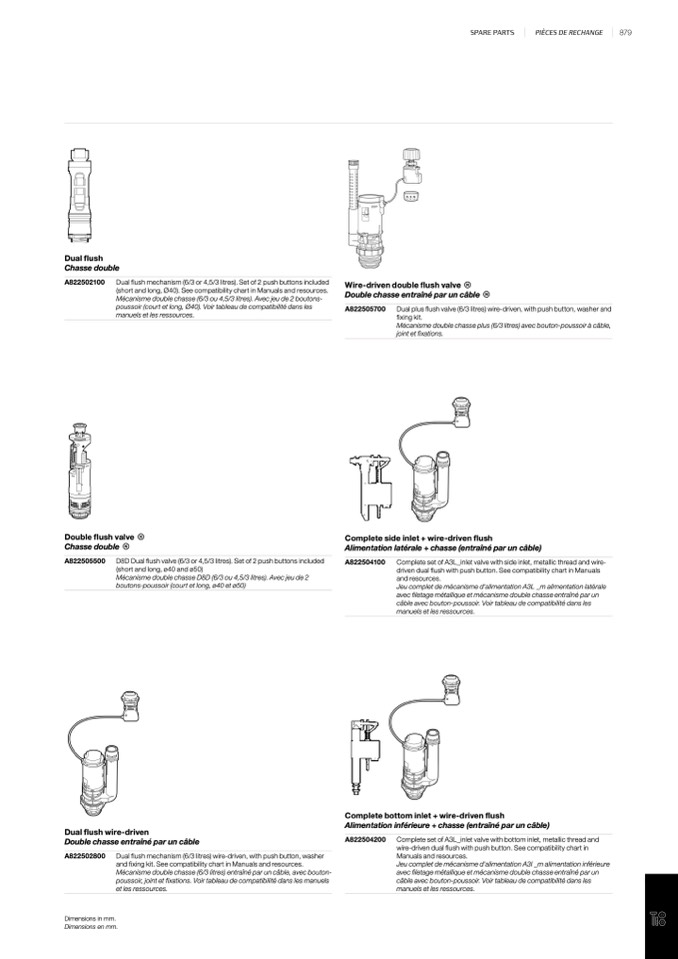 Mécanisme double chasse plus (6/3 litres) avec bouton-poussoir à câble,