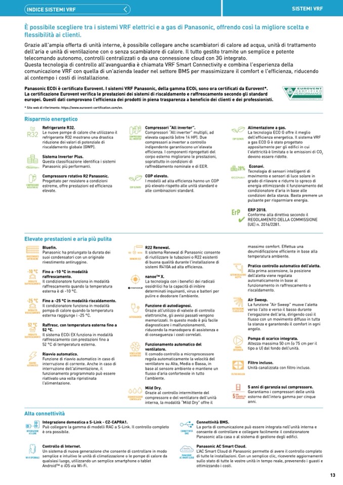 Panasonic ECOi è certificato Eurovent. I sistemi VRF Panasonic, della gamma ECOi, sono ora certificati da Eurovent*.