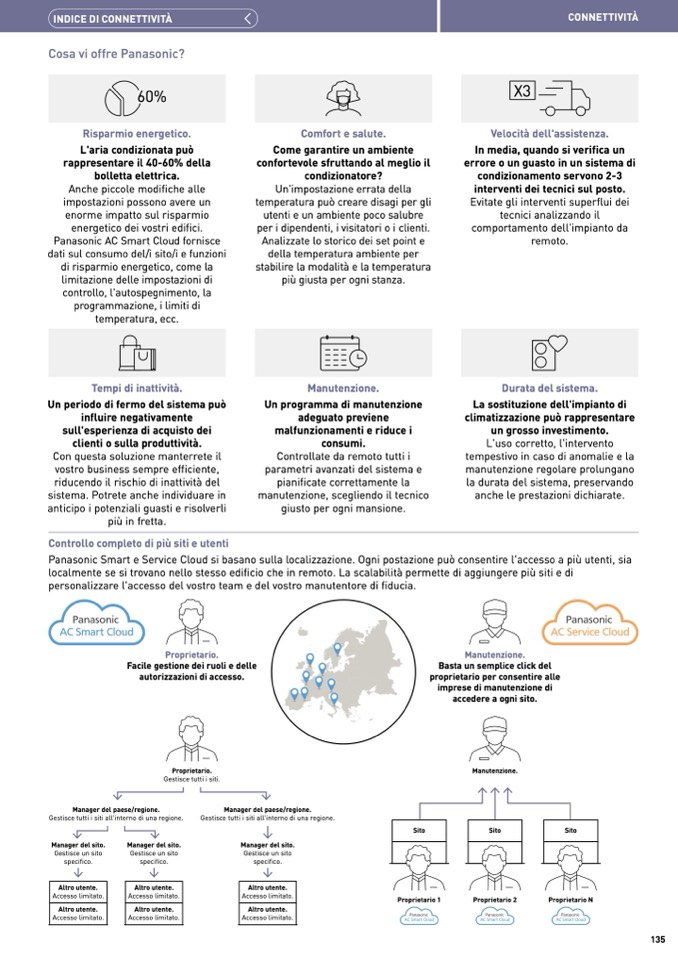 Panasonic Smart e Service Cloud si basano sulla localizzazione. Ogni postazione può consentire l'accesso a più utenti, sia