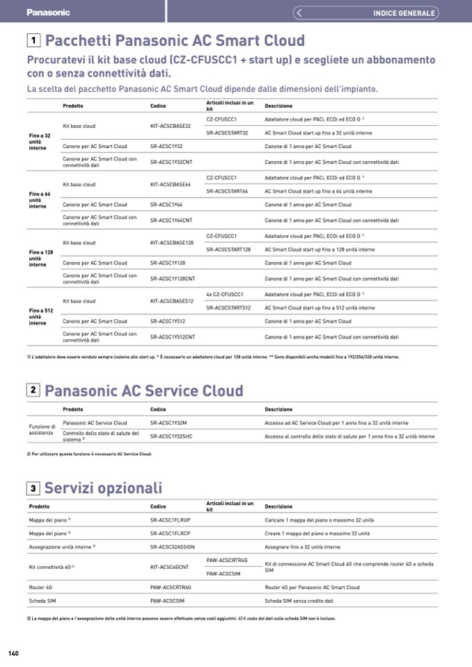 1) L'adattatore deve essere venduto sempre insieme allo start up. * È necessario un adattatore cloud per 128 unità interne. ** Sono disponibili anche modelli fino a 192/256/320 unità interne.