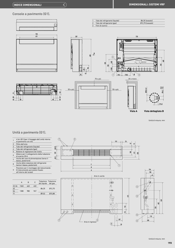 4 fori Ø12 (per il fissaggio dell'unità interna
