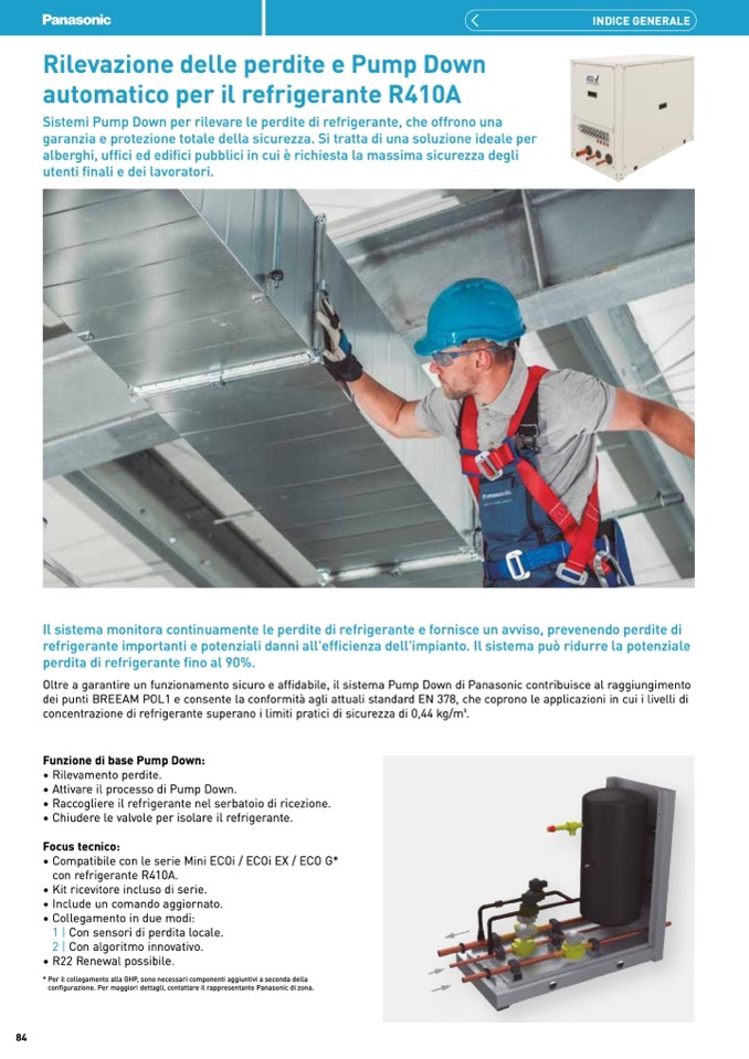 Oltre a garantire un funzionamento sicuro e affidabile, il sistema Pump Down di Panasonic contribuisce al raggiungimento