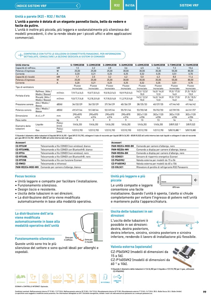 Le specifiche sono soggette a modifiche senza preavviso. Per informazioni dettagliate su ErP / Etichette energetiche, visitate i nostri siti web www.aircon.panasonic.eu o www.ptc.panasonic.eu.