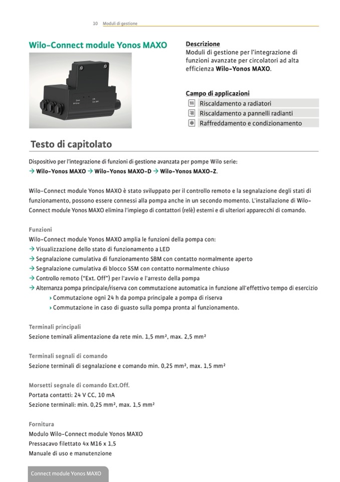 Wilo-Connect module Yonos MAXO amplia le funzioni della pompa con: