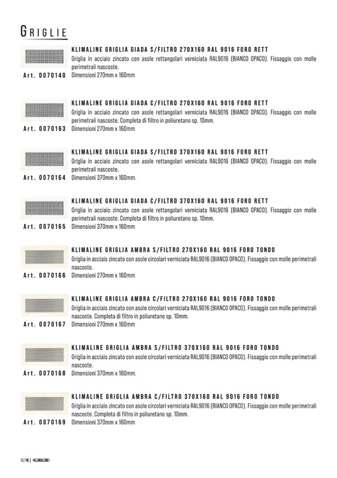 KLIMALINE GRIGLIA GIADA C/FILTRO 270X160 RAL 9016 FORO RETT