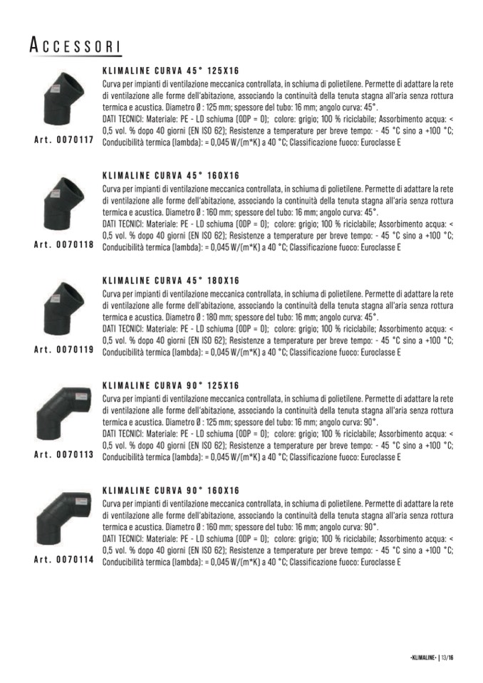 KLIMALINE CURVA 45° 180X16