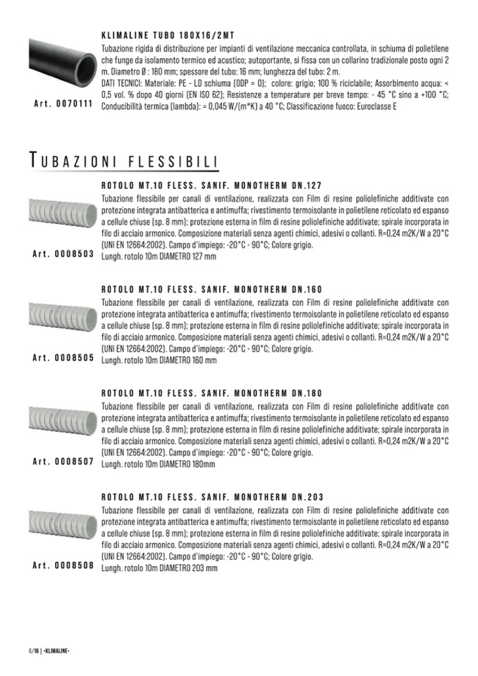 KLIMALINE TUBO 180X16/2MT