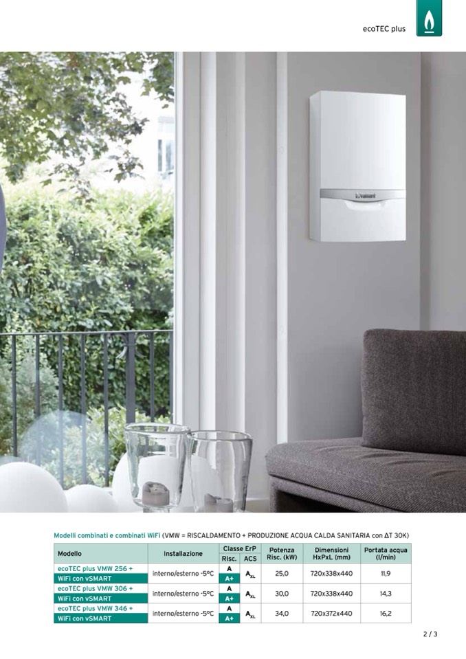 Modelli combinati e combinati WiFi (VMW = RISCALDAMENTO + PRODUZIONE ACQUA CALDA SANITARIA con ΔT 30K)